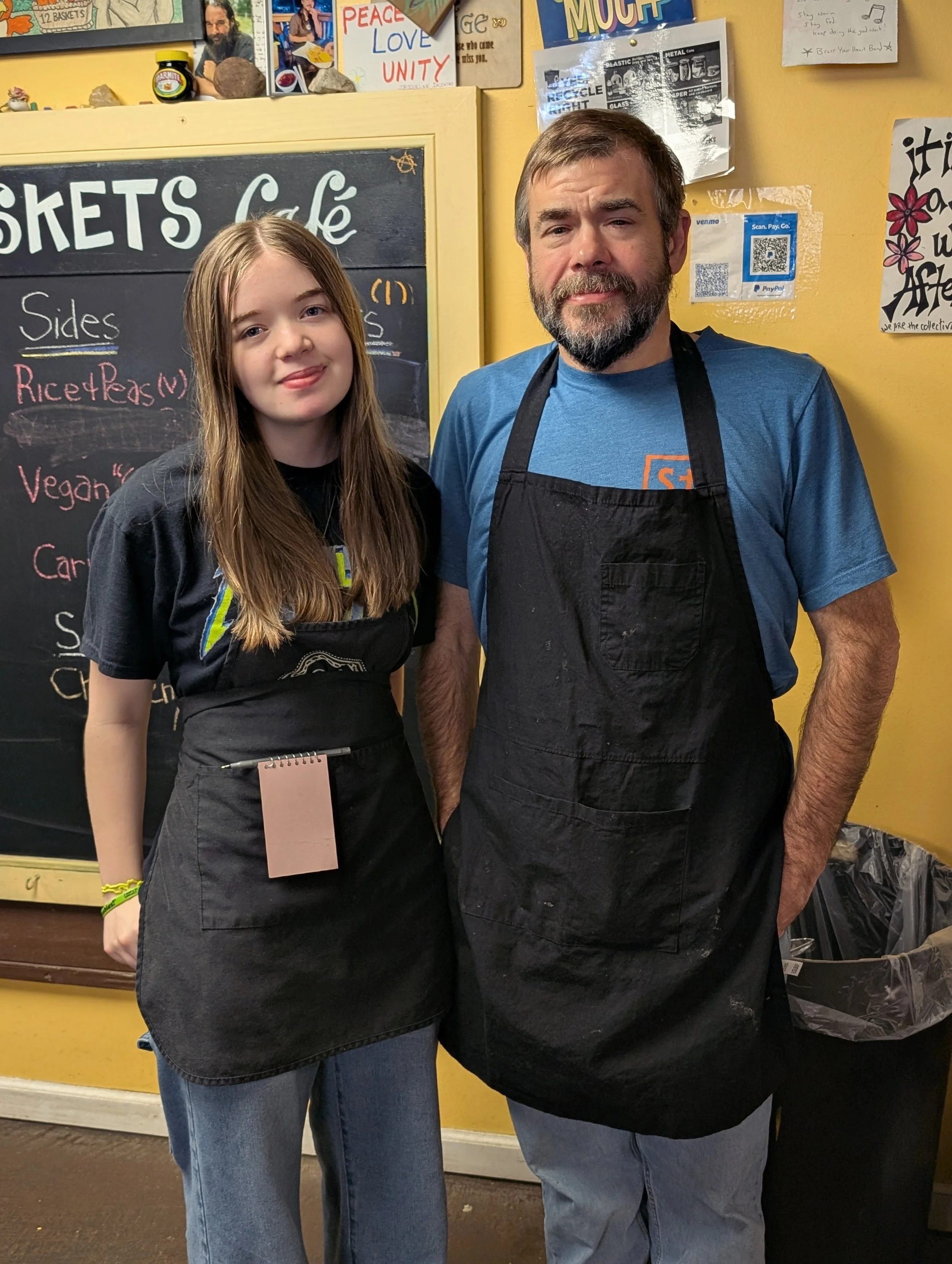 Forest: Being part of the community and seeing what needs to go on at any given time. More specifically, with picking up food from different places around town, coming in and working in the pantry, serving tables, and just you know talking to people.